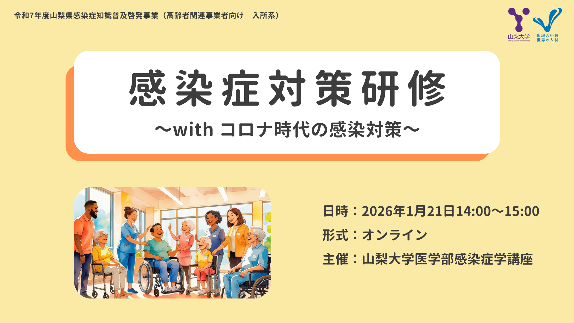 お知らせNews セミナー 2026.02.10 【医師向け】令和7年度新型コロナウイルス感染症罹患後症状治療研究会を開催しました 専門人材 2026.02.12 抄読会レポート:固形臓器移植患者のグラム陰性菌菌血症に対する経口抗菌薬治療の有効性 専門人材 2026.02.10 抄読会レポート:“かぜ”に対する経鼻スプレーと行動介入の効果 ... 詳しく見る 専門人材 2026.01.22 抄読会レポート:HPVワクチンの1回接種vs2回接種の非劣性試験 ... 詳しく見る 業種別研修 2026.01.21 高齢者関連事業者【入所系施設】向け 感染症対策研修を開催しました お知らせ一覧 公式SNS X(旧 Twitter)アカウントはこちら Youtubeチャンネルはこちら LINEアカウントはこちら